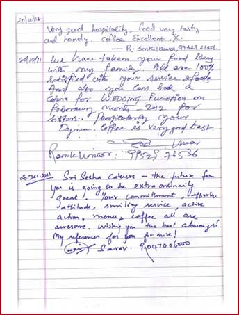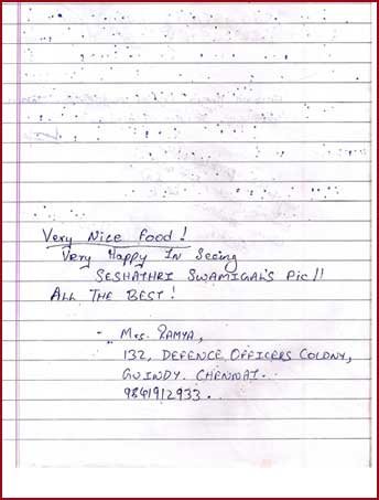 Shri Shesha Caterers provided a joyful experience when we celebrated the Upanayanam of our Son in Chennai in Jan 2011. Having lived outside India for more than 25 years, we were so nervous about the organisation skills and commitment of caterers in India. However Sundar from Shri Shesha Caterers, who made only 1 visit to our home for 2hrs, helped us organise the menu for the 2 days that consisted of 3 snacks and 3 meals. Sundar provided us a document that contained all the Pooja items, menu for all the meals and these were delivered without a fuss at the right time during the event. It was an experience that left me speechless - Thank you Sundar and Shri Shesha Caters, we look forward to our next family occasion with you.
